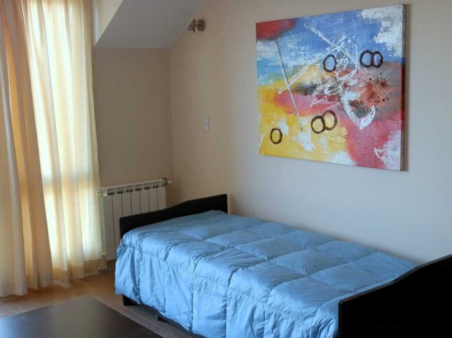 Esta unidad es un dúplex de 2 ambientes, se compone de una habitación matrimonial en la planta alta con cama somier Queen, baño completo y vestidor, Living y cocina con anafes y horno eléctrico, diván cama para dos personas en el living y toilette en planta baja.