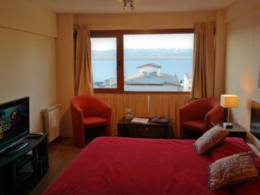 Este amplio mono ambiente con vista al lago se ubica en el centro de la ciudad en un edificio de gran categoría. Ubicado en el centro sobre la calle Moreno a una cuadra de la calle Mitre