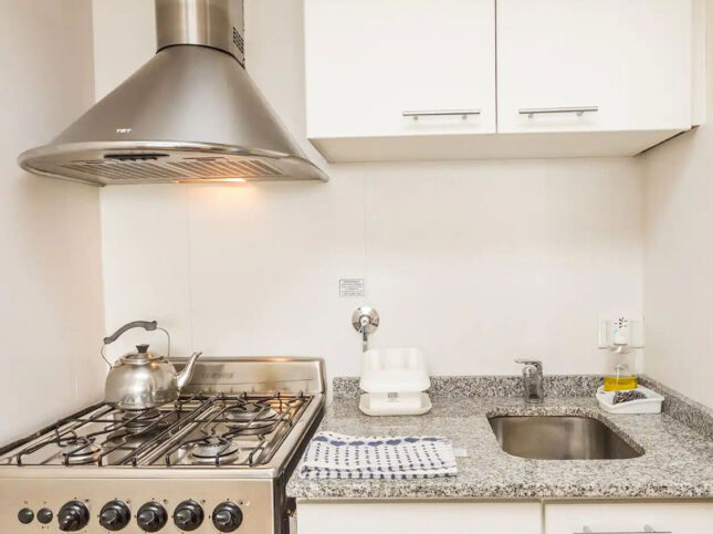 - Cocina totalmente equipada (Horno, microondas y heladera con freezer)