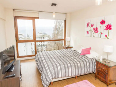 Amplio monoambiente con una espectacular vista al lago, ubicado en el centro de la ciudad en un edificio de gran categoría el cual posee pileta climatizada y gimnasio. El mismo está ubicado sobre la calle Moreno. Dicha calle es la primera paralela la Avenida Mitre (avenida principal). A menos de 100 metros encontrará una farmacia, una panadería, un almacén, una remisería y un supermercado para su total comodidad.